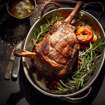 Leg of lamb seasoned with blend of herbs & spices, oven roasted with oreganato potatoes. Min 5 lbs.